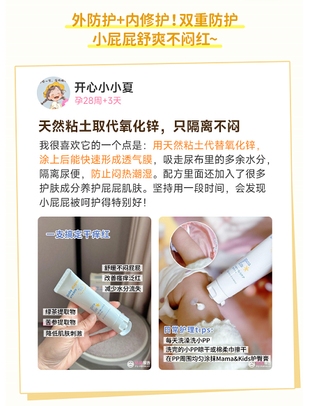传统的氧化锌护臀膏能起到不错的隔离效果,但使用中常伴有的困扰也不少:膏体质地往往偏厚重、黏腻难推开,每次清洗都像一场“拉锯战”,用力擦拭怕伤肤,不彻底清洁又担心残留。过度封闭的质地,甚至可能堵塞毛孔,引发其他危肌。